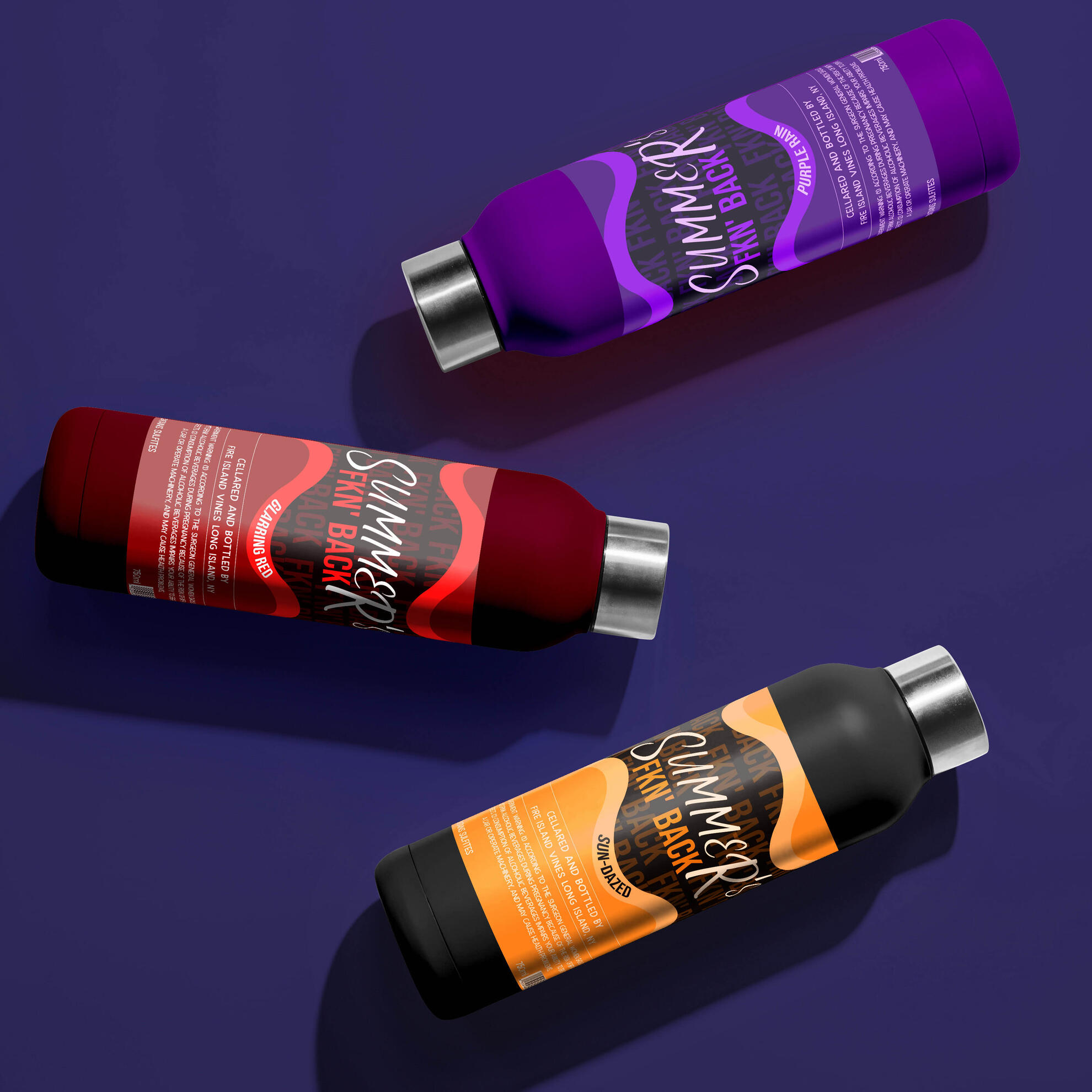 This project was completed as a college assignment, where the company was randomly selected from a hat for me to develop a new series of branding. I designed the Summer’s FKN’ Back wine series for Fire Island Vines to feel bold, confident, and unmistakably summer. Each bottle embraces vibrant, eye catching color theme paired with a wavy, energetic layout that mirrors the carefree, lively spirit of Fire Island summers!The edgy name, striking color contrasts, and handwritten style typography were all intentional choices to capture attention and convey a playful, rebellious energy. Each flavor; Glaring Red, Purple Rain, Splash Blast, and Sun-Dazed, were crafted to have distinct personalities, while maintaining a cohesive visual identity across the collection.