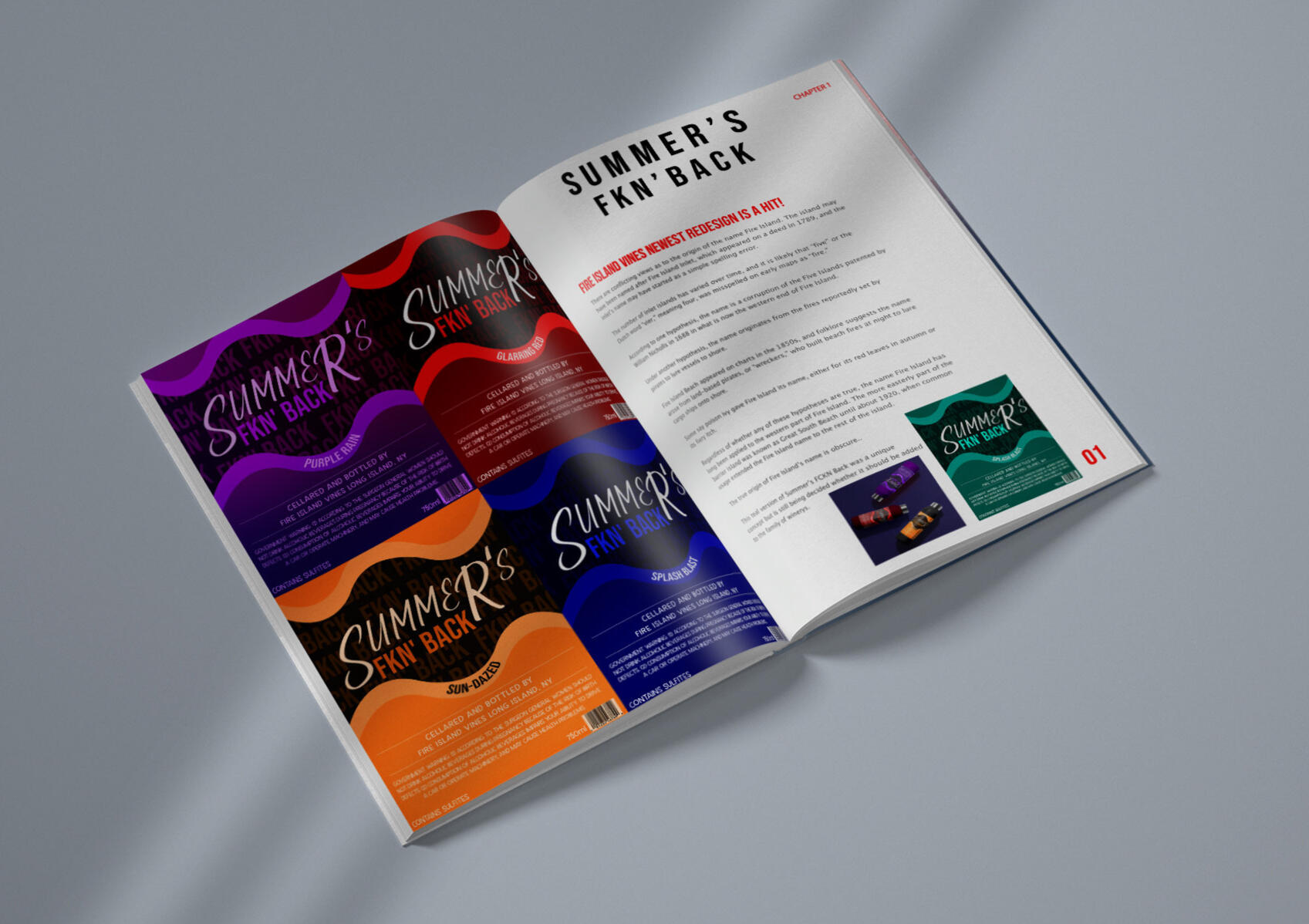 This series was designed to stand out on shelves and at summer gatherings, from beach bars to backyard parties, giving Fire Island Vines a bold, memorable, and fun brand presence that perfectly embodies the energy of the season!