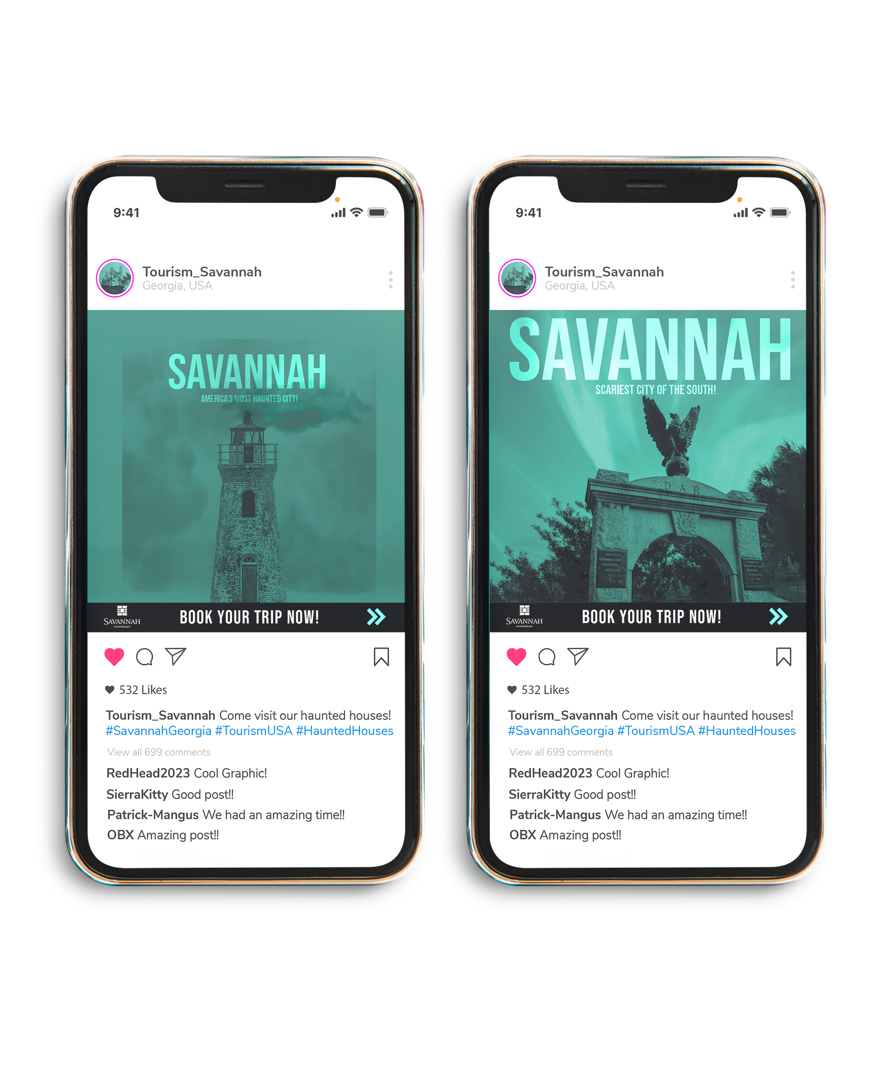 This project reimagines how Savannah, Georgia is advertised by uncovering a lesser-known side of the city - its reputation as one of the most haunted locations in the United States. Rather than focusing on traditional tourism imagery, the campaign leans into Savannah’s eerie history to spark curiosity and intrigue among new audiences.